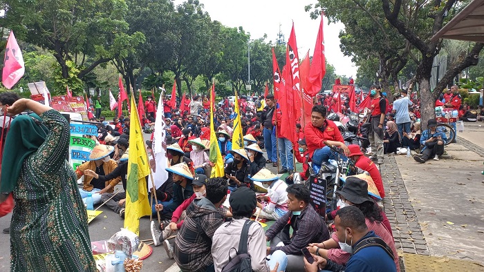 Kelompok massa yang turun ke jalan mencakup berbagai elemen masyarakat, termasuk serikat pekerja, mahasiswa, dan organisasi kemasyarakatan.